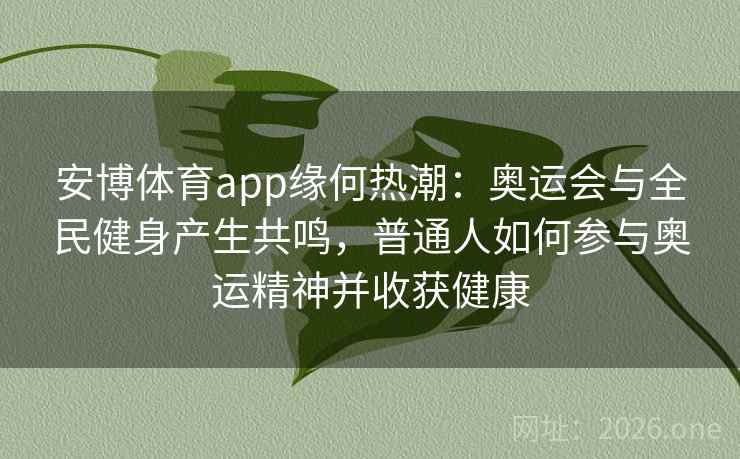 奥运会的魅力在于它展示了人类极限的突破,但这种极限并非遥不可及。通过科技的进步和科学的训练方法,普通人也能参与到体育运动中,并从中收获健康与快乐。这时候,安博体育app作为一种集科技与体育于一体的创新工具,成为了连接奥运会精神与普通人生活的桥梁。
